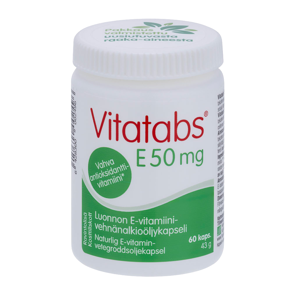 产品介绍 天然维生素E 50 mg 青春活力胶囊,每粒含完整的生育酚族群(α、β、γ、δ),以天然小麦胚芽油为基础,提供高效脂溶性抗氧化支持,帮助维护细胞、皮肤、心血管与免疫系统健康。维生素E又被誉为“青春与活力的维生素”。 | 核心成分 每粒含: – 天然小麦胚芽油 329 mg – 天然生育酚混合物:γ-生育酚 60.9 mg、δ-生育酚 20.3 mg、α-生育酚 11.6 mg、β-生育酚 1.5 mg – 总维生素E 含量:50 mg(等效生育酚形式) 使用建议 每日1粒,建议随餐服用。如有需要可在医生建议下调整用量。 |